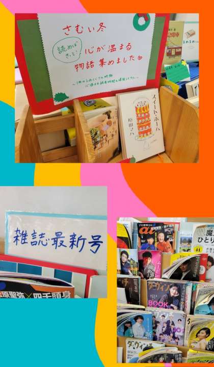 昨年教職員へ子どもたちへのお勧め本の調査がありました。そんな本も含めたくさんの新刊本が入荷されます。また、雑誌最新号も陳列されています。ここに来れば無料で読めます。