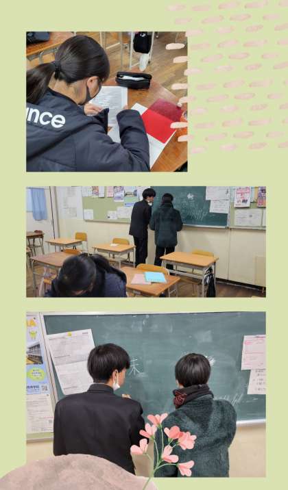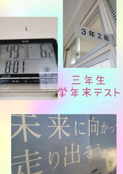 三年生教室では早朝より登校し、今日のテストに向けて勉強に励んでいました。