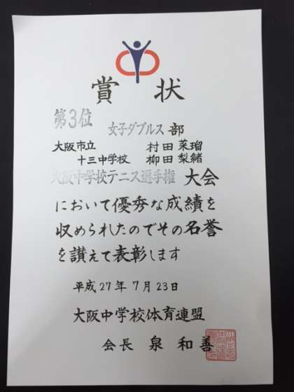 が大阪府大会3位に入賞し、近畿大会へ出場します!
