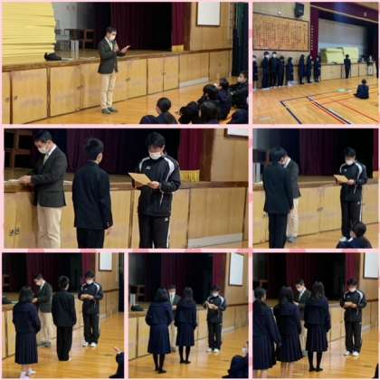 先週行われた百人一首大会結果発表と表彰が行われました。