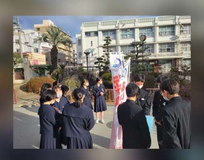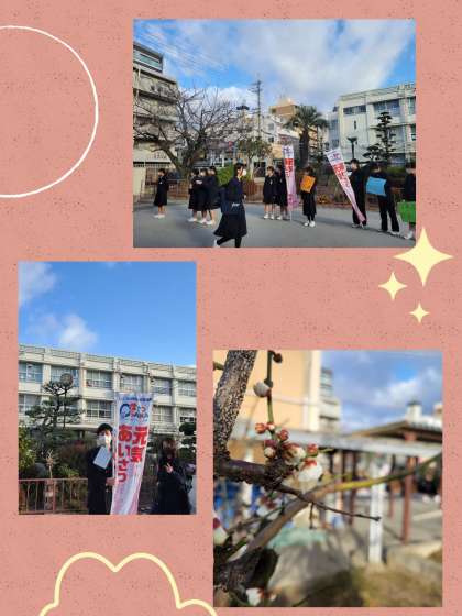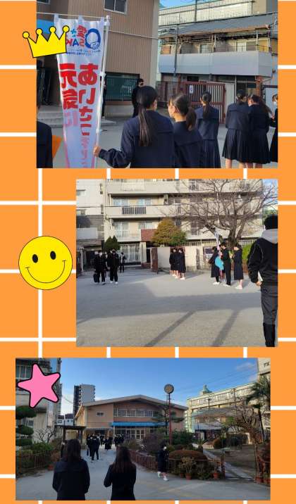 暖かい春の日差しが生徒会や生活委員を照らします。今日から『あいさつ運動』が始まりました。