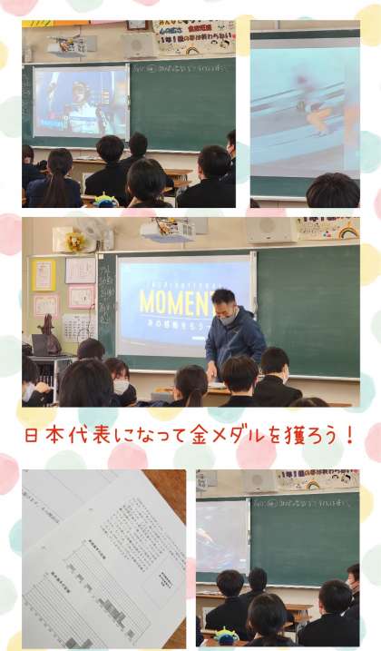 長野オリンピック、スキージャンプの動画で数学の導入が行われます。当時の感動的な大ジャンプをした原田選出と常時安定感のある船木選手の記録をヒストグラムから読み取るのが今日の授業内容。
