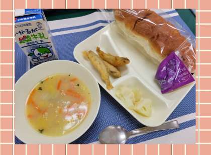 2月は28日で終わり。今月最後の給食は『ワカサギのフライ』でした。