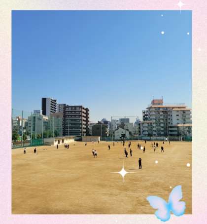 3月、運動場に暖かい春の日差しが心地よく子どもたちに降り注いでいます。