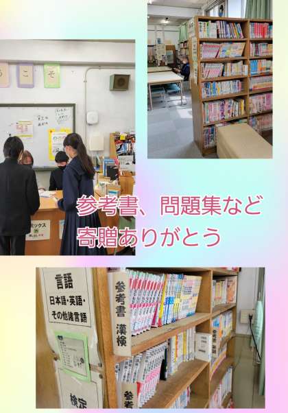公立、私立高校の過去問をはじめ、問題集など、不要になったものがあれば、図書室へ寄贈してください。