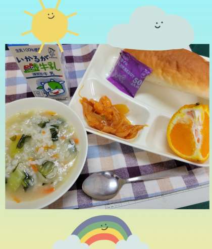 『パン』に『エビチリソースいため』の組み合わせはよく合います。しかし、パンに『中華がゆ』との組み合わせはどうなの?ところが、見た目で決めたらダメですね。