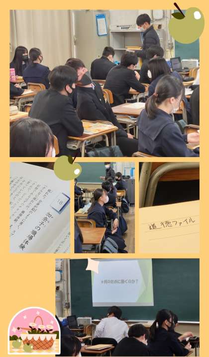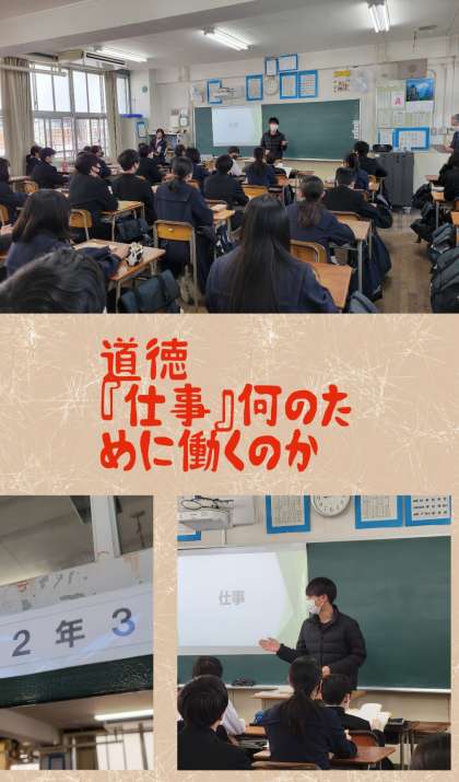 二年生道徳授業では『仕事』について、読み物教材で、働くことの厳しさやその意義を知り、自身の成長と生きることの尊さを学ぶ機会になりました。