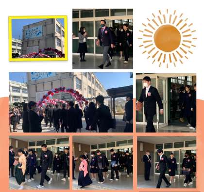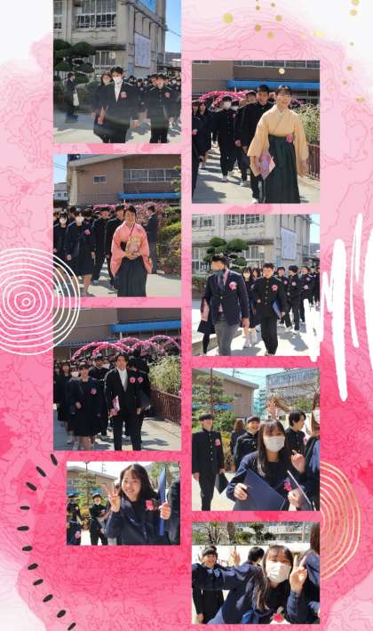 後輩たちと教職員、そして保護者で作る花道を通り、それぞれの新たな世界に向けて力強く旅立ちました。