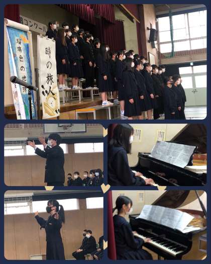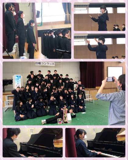 となりました。コンクールを盛り上げてくれた、指揮者と伴奏者の16名も表彰を受け、みなさんから大きな拍手がおくられました。2年生としての生活も残り1週間ですが、このコンクールで得た自信を胸に、最高学年としてがんばっていけるようにしてほしいと思います。