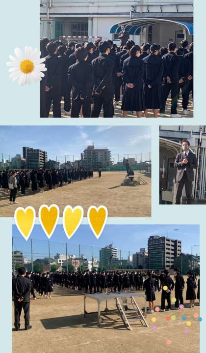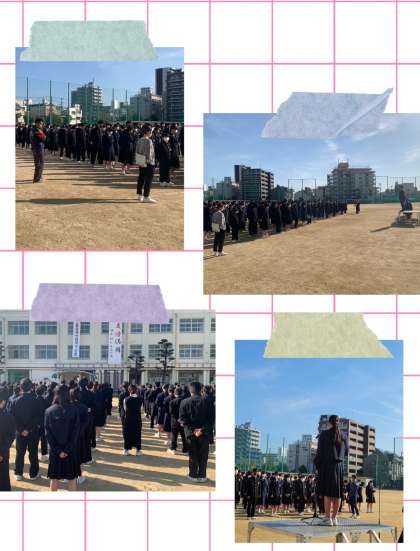 先日卒業した三年生の姿はここにはありません。一・二年生だけの300名余りの集団です。