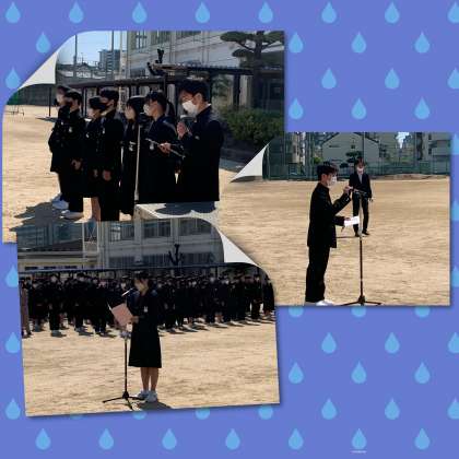 生徒会代表生徒から、歓迎の言葉、1年生の代表から歓びの言葉が読み上げられました。