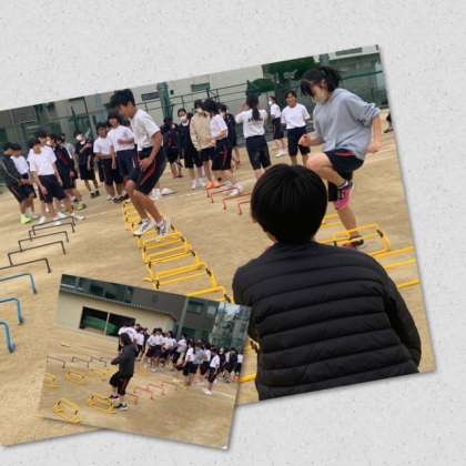 上級生が1年生に丁寧に優しく教えています。教えることが自身の競技レベルのアップにも繋がります。