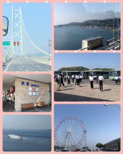 バスは順調に進み、明石海峡大橋を渡って淡路島に上陸しました!