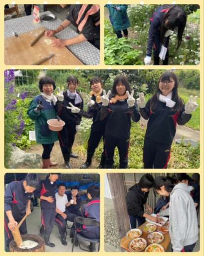 各ご家庭で営んでおられる家業のお手伝いや、野菜の収穫、食事づくり、餅つきなど、それぞれに心を尽くしていただき、生徒たちは貴重な体験をさせていただいています。