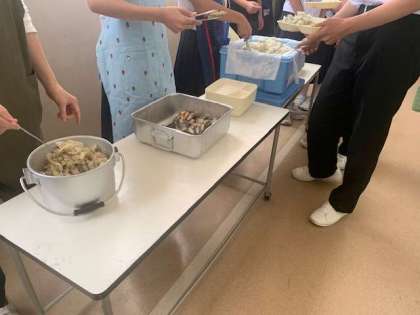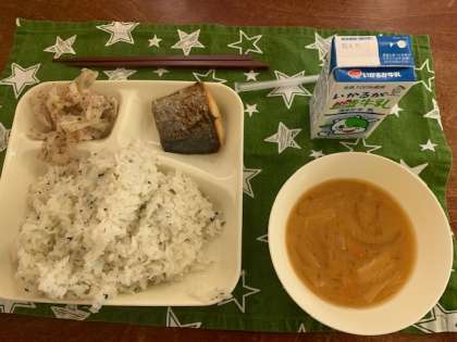 菜飯、みそ汁、キャベツの赤じそあえ、