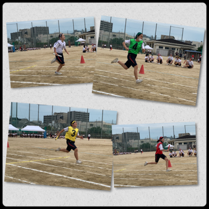 走る速度を落とさないバトン練習の成果が