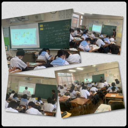 「めあて」「考えを書く時間」「話し合う場面」板書パワーポイントの工夫等を大切にした授業が行われています。
