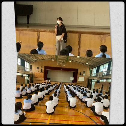 講話担当の先生からのお話しに続いて、教育実習生からの挨拶がありました。