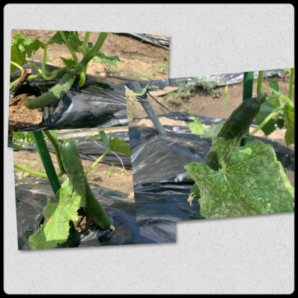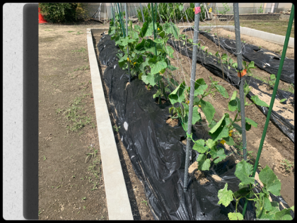 きゅうりネットも設置済み、きゅうりの本線も50cm程の背丈になってきました。