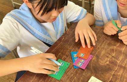 あいさつが校舎に飛び交い、昼休みにはたまったシールを貼ったカードを交換にくる生徒たちの列ができていました。