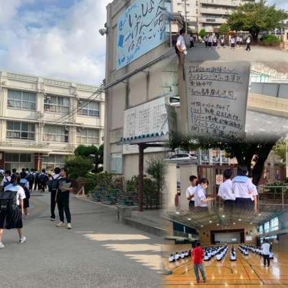 正門で中学生が大きな声であいさつをしている様子をご覧になった
