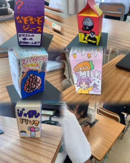 オリジナル紙パックデザインの飾り付け。