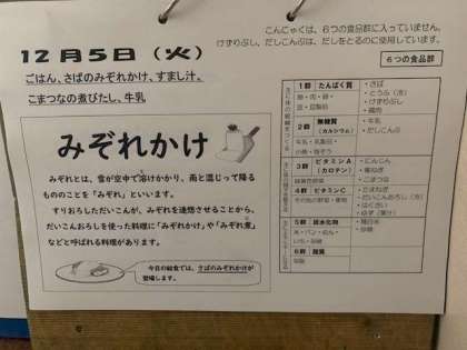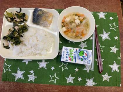 ごはん、さばのみぞれかけ、すまし汁、こまつなの煮びたし、牛乳
