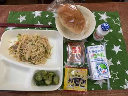 メニューは「黒糖パン」「和風焼きそば」