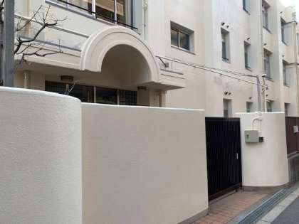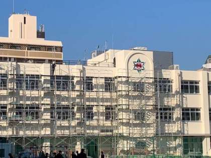 西館校舎改修工事に伴う塗装工事も終了間近となっています。