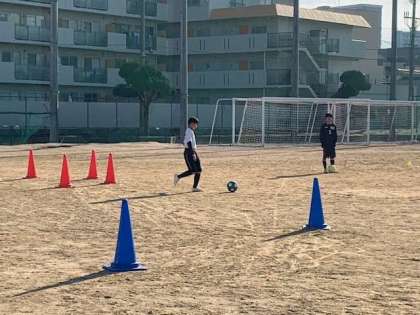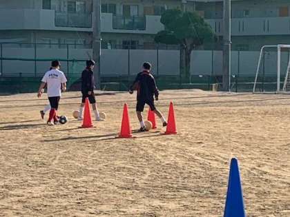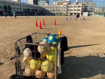 ドリブルを通じたコーディネーション・トレーニング。ドリブルをウォーミングアップの一つとして採り入れているようです。
