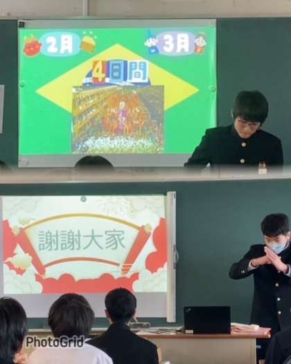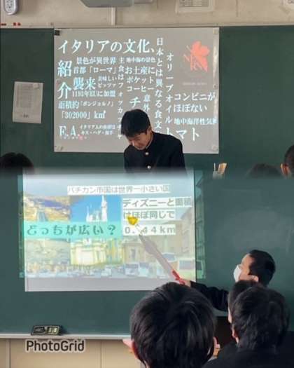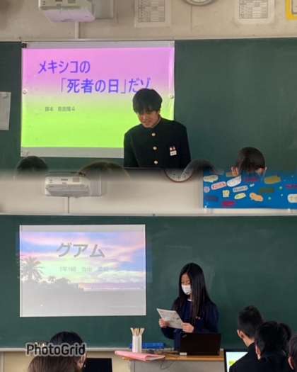 さまざまな国の言語・歴史・文化・人種・観光地などを調べて、スライドでまとめて1人ずつ発表しました。