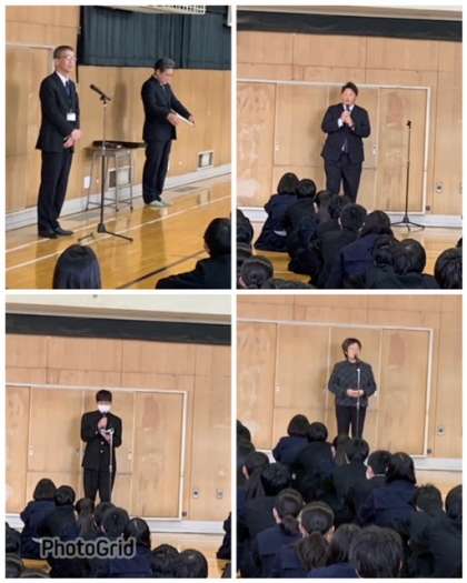学校長講話は、先日の卒業式のお話でした。来賓の皆さん地域の方々に素晴らしい卒業式であったとお褒めの言葉をたくさん頂いたとのことでした。
