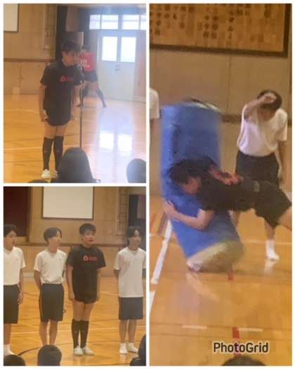 ダミーに見事なタックルを披露しました。