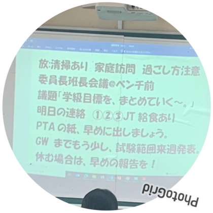 明日の予定が黒板に映し出されています。