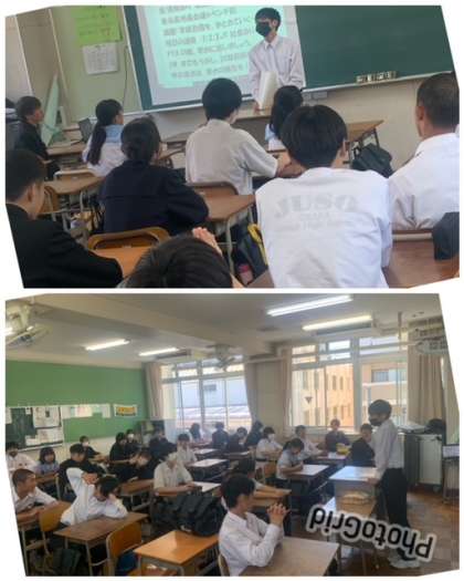 係の生徒の反省の言葉に対し、学級全体で拍手をしています。