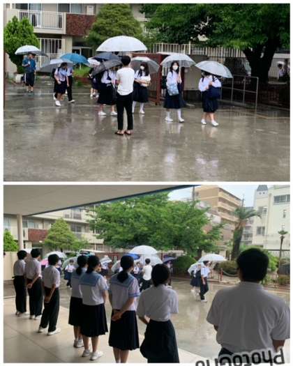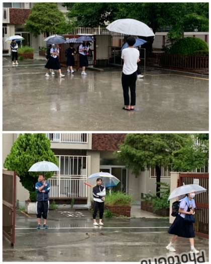 強い雨の中、登校となりました。