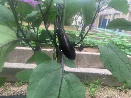 開花後15日〜20日前後です収穫できます。とても形のいいキレイなナスが育っています。
