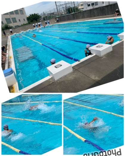 手と足、呼吸のバランスをとり速く泳ぐことを目標にテストが行われていました。