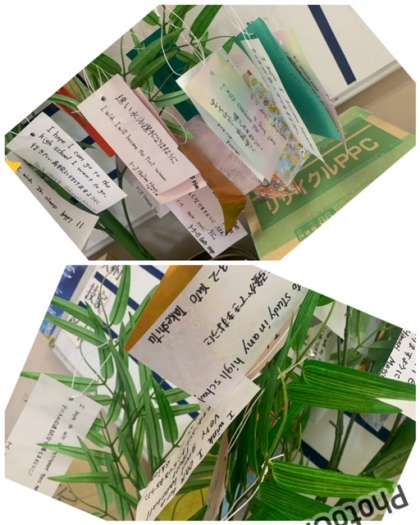 7月7日の七夕に飾る短冊に願いや希望を日本語と英語で表現しています。