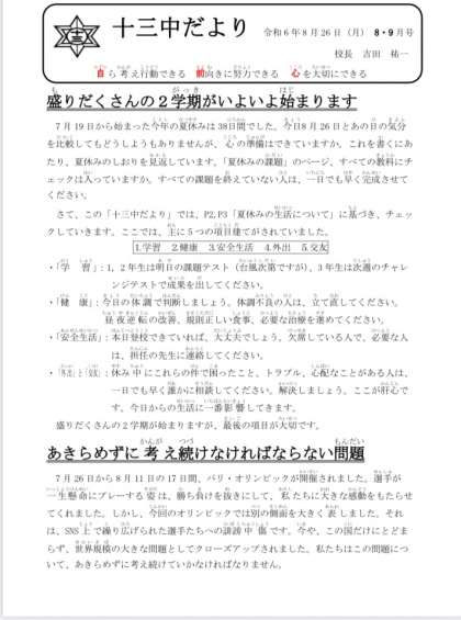 十三中だより(8.9月)