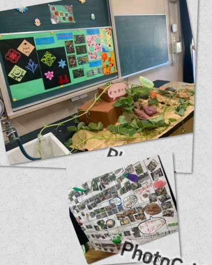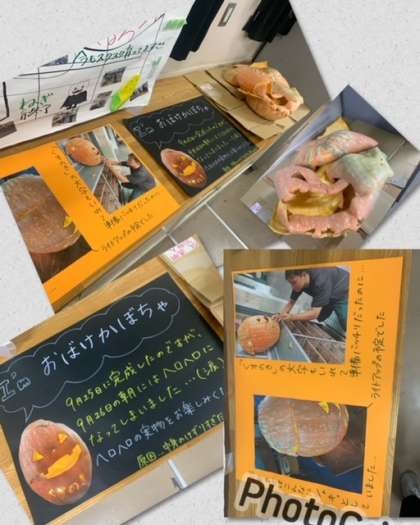 「切り紙・スクラッチアート・コースター・季節の日にち表示・育てたカボチャ」作品展示