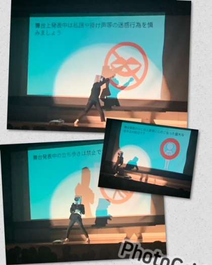 人間のかっこうをした、カメラやサイレンが登場して鑑賞マナーについて演技を見せる内容です。