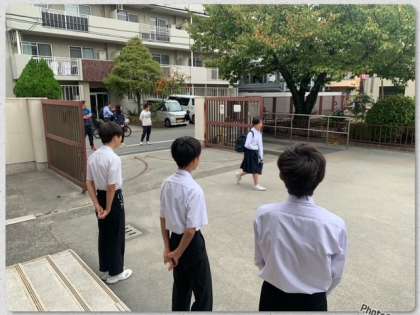 「おはようございます」気持ちのいい元気なあいさつをしています。