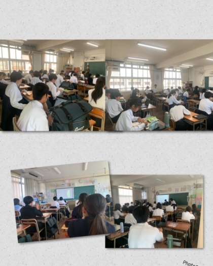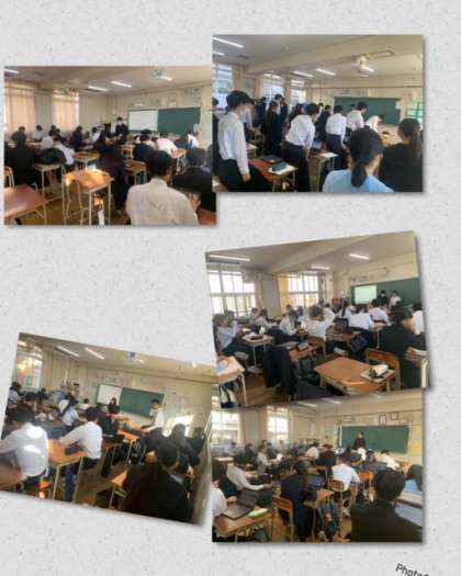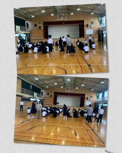 出欠確認、諸連絡の後、朝学習が始まります。2年生は体育館で学年集会です。