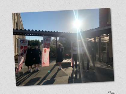 ニコニコ笑顔の人、元気に大きな声ですあいさつを交わすひと。