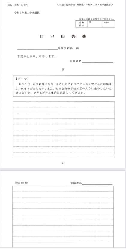 大阪府公立高校入試に必要な自己申告書の作成を行っています。