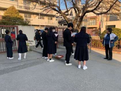 三連休明けての登校の様子です。寒波は少し緩むようですが、まだまだ寒さが続きます。インフルエンザをはじめ、感染症も流行のピークのようです。