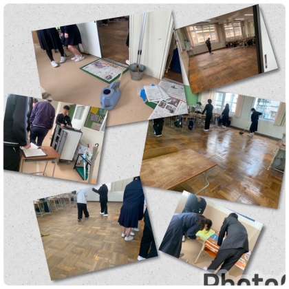 午前中2時間の学級活動の後、教室の油引き作業を行いました。