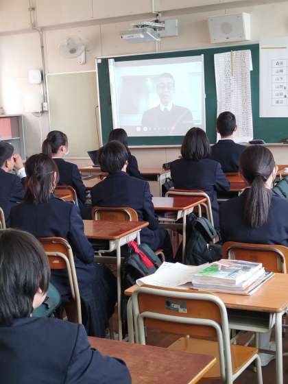その後、オンラインでの始業式を行い、新転任の先生の紹介等をしました。1年間、よろしくお願いします。