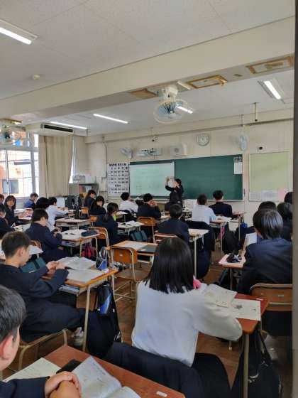 写真は1組と2組。1組は国語、2組は家庭科です。